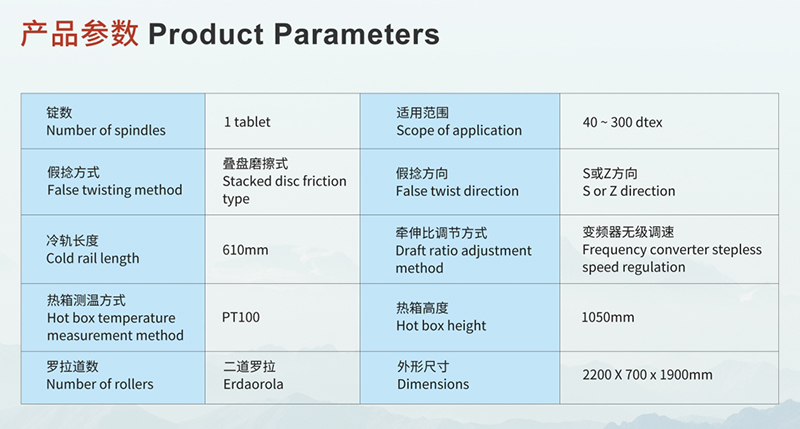 DTY加彈實(shí)驗(yàn)機(jī) FCF-10 該設(shè)備將滌綸(POY)、丙綸等無(wú)捻原絲,通過(guò)假捻變形加工成為具有中彈、低彈性能的彈力絲,同時(shí)可增加網(wǎng)絡(luò)部件進(jìn)行網(wǎng)絡(luò)絲的加工。